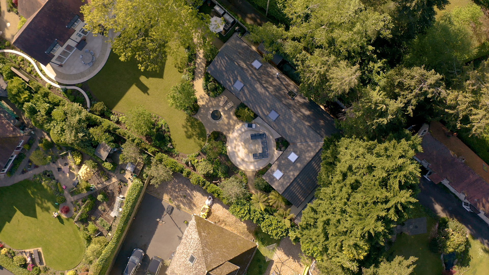 The complexity of this garden design required ingenious on-site problem-solving—at one point, even a toilet plunger was used as a makeshift compass point to mark the curve. The result is a seamless, flowing layout that looks impeccable from every angle, especially when viewed from above.