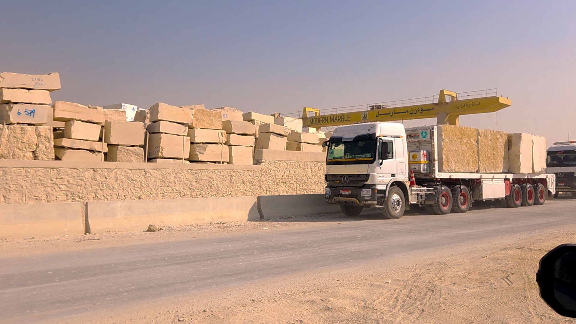 Driving through the zone is an overwhelming sensory experience. There are yards specialising in granite and marble imported from Italy and Turkey, sitting shoulder-to-shoulder with yards celebrating Egypt’s own bounty. It’s a global stone marketplace, but our compass was set firmly on the local treasure: Egyptian limestone.