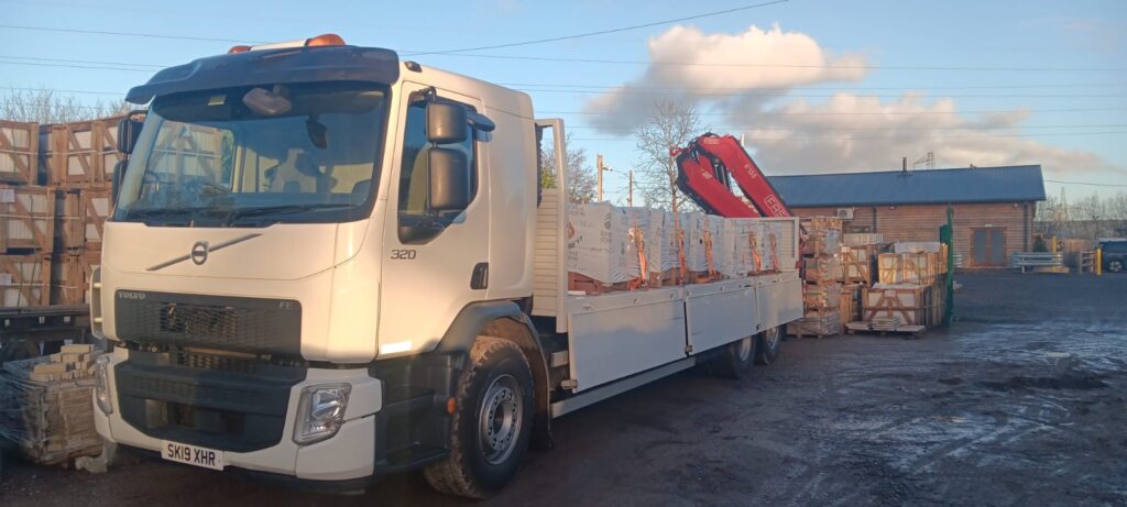 Like many companies specialising in heavy materials, we use our own dedicated crane lorry for deliveries where possible and practical. These deliveries are made using a lorry equipped with a powerful crane that has an 8-metre reach. This often allows us to park on the road and offload onto your property, even if direct vehicle access is not possible.